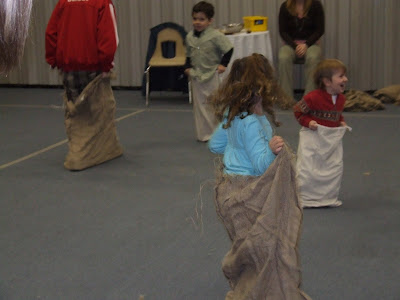 We don't have any pictures but at the very end a few parents tried out the sack race and I am VERY happy to report that I was the winner! I smoked all the dads! HA